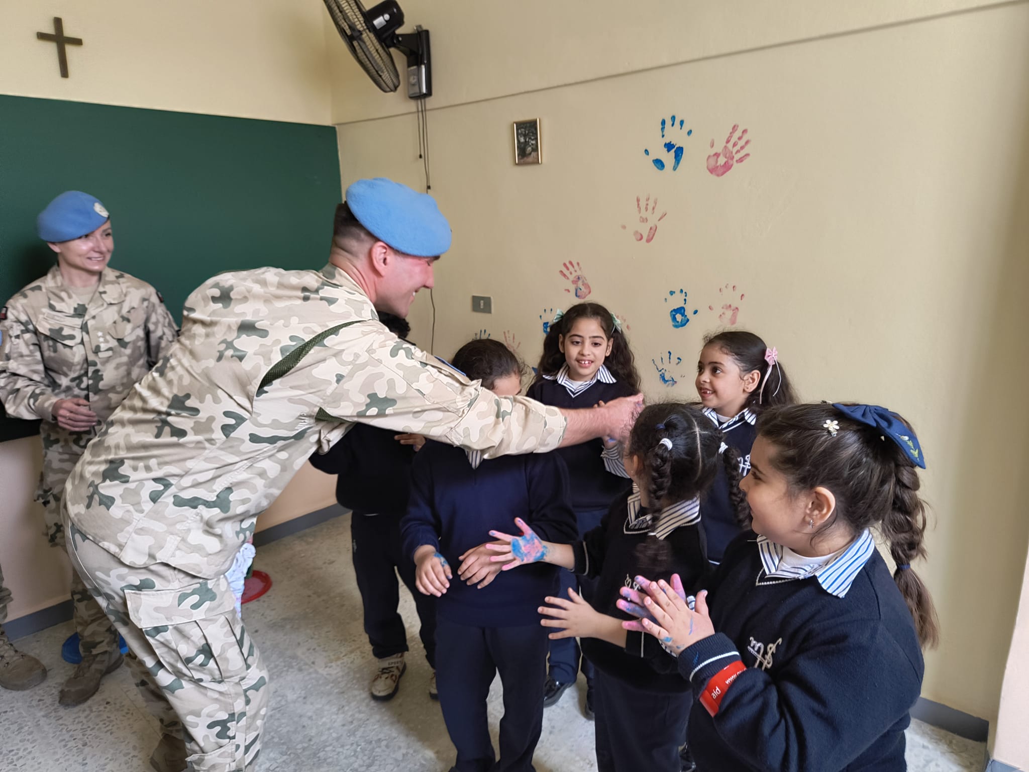 Polscy żołnierze z wizytą w szkole w Alma Ash Shab